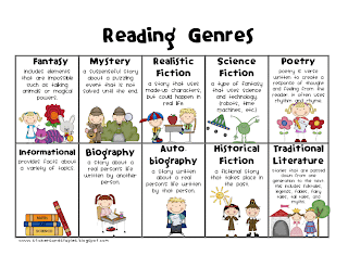 I don't have much time to type tonight since it is so late, but I wanted to show you a new genre poster I created for my kids' reading workshop binders! I wanted a page where they could reference genres quickly so they could fill out their reading logs. I based these off Beth Newingham's genre posters